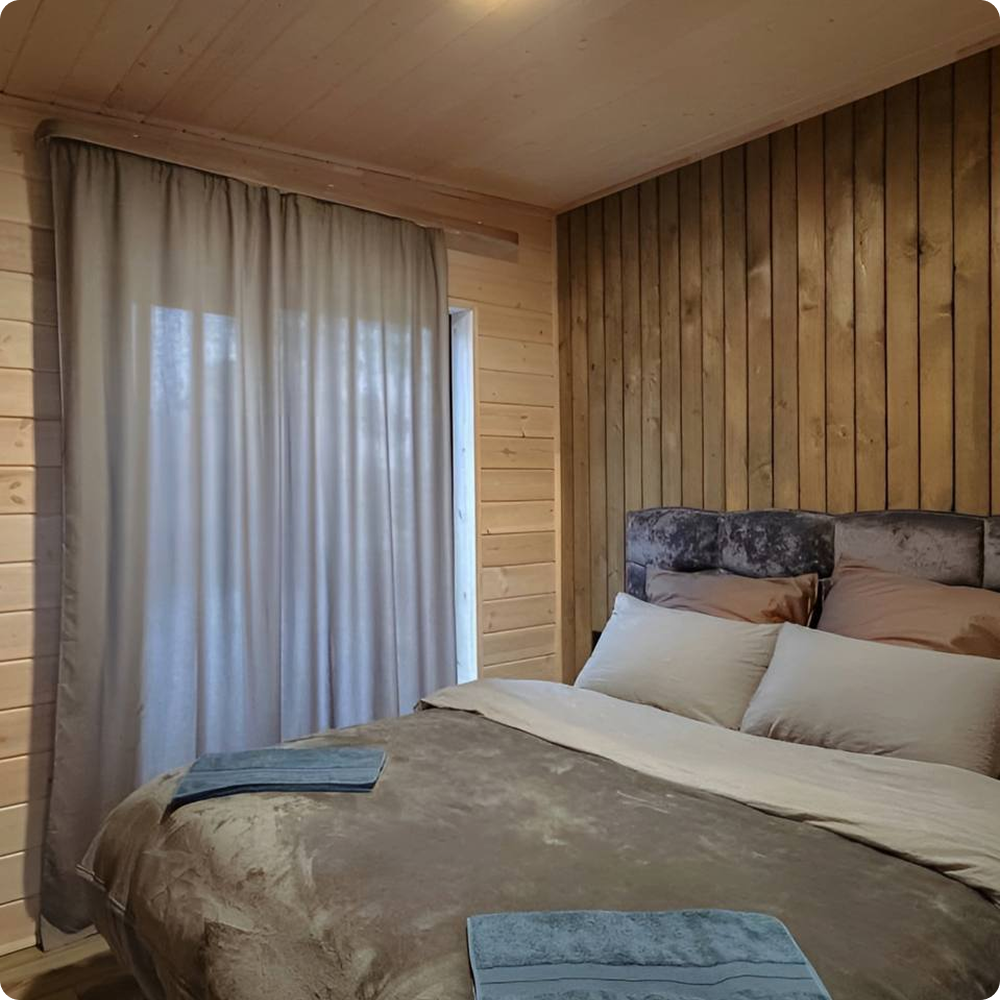 Вдохните свежий лесной воздух и отдохните в настоящем комфорте. Домик Family one — это оазис гармонии с природой и удобства, где каждая деталь создана для вашего удовольствия.